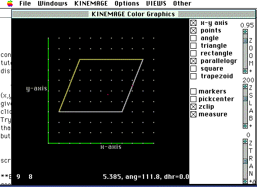 Tutorial II makes use of MAGE capabilities to demonstrate 2-D graphing, and the measuring of angles and line segments. The tutorial also introduces the Draw capabilities of MAGE, which will allow students to draw polygons onto the grid and measure angles and distances.